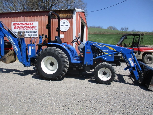 2014 NH Workmaster 40 4wd , manual reverser trans , R4 tires loaded , NH loader with skid steer QT , Nh sub frame backhoe less then 600 hrs